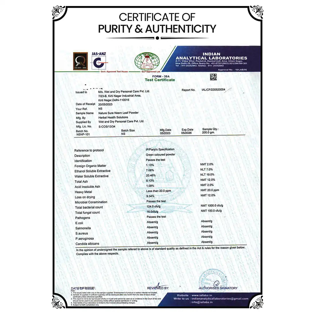 Nature Sure Neem Leaf Powder is a traditional remedy for combating free radicals and promoting skin and hair health. Hailed as the king of Ayurvedic herbs, Neem was declared as the United Nation’s Tree of the 21st Century. The US National Academy of Science called neem ‘a tree for solving global problems’. This edible superfood is a phyto-therapeutic panacea that is a plant-based product sourced directly from the farms. This top certified quality product does not contain any chemicals, preservatives, additives or colors. It has been processed and packed at an ISO and GMP certified unit. Its purity and authenticity have been certified by a GLP-approved laboratory.